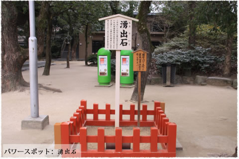 大鳥居をくぐって正面に「箱崎宮のパワースポット」である「湧出石」があります。